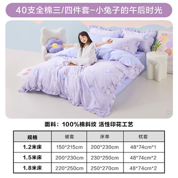 罗莱儿童四件套 母婴A类100%精梳全棉被套床单枕套纯棉被罩 200*230