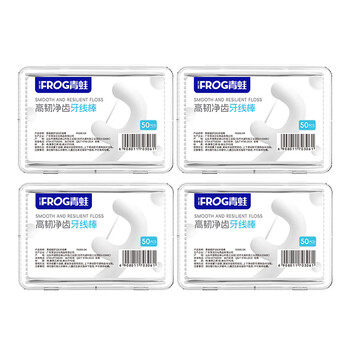 青蛙高拉力洁齿牙线棒便携盒装柔韧超细圆线牙签牙线50支*4盒