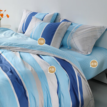 水星家纺四件套床上纯棉被套床单枕套床上用品套件1.5米床新蓝语