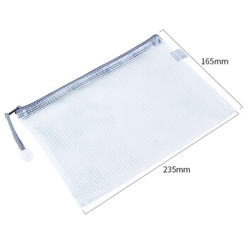 得力(deli)63451 A5透明文件袋拉边袋 PVC网格拉链袋公文袋资料袋 凭证票据试卷收纳袋 颜色随机 10个装