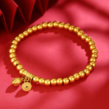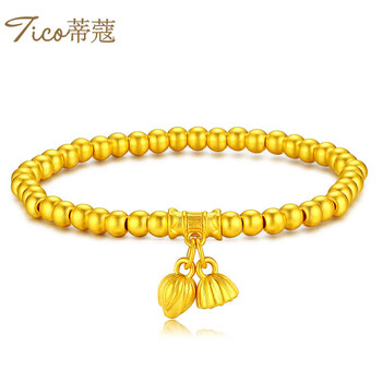蒂蔻(Tico)好运莲莲足金两世欢黄金手链女本命年3D金古法金珠手镯生日礼物