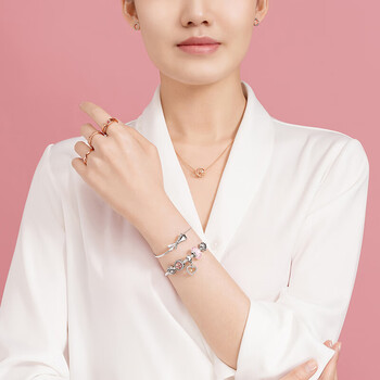 潘多拉(PANDORA)硬糖手链925银柱形扣简约diy蛇骨链情侣款银手链银饰生日礼物