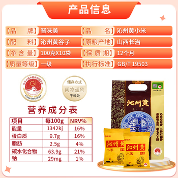 晋味美沁州黄小米1kg1袋(100g*10袋)