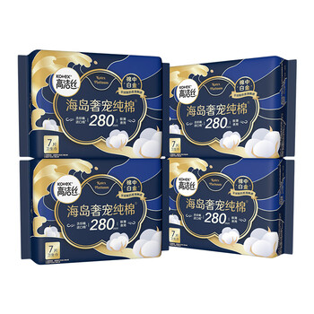高洁丝【近0敏海岛棉】奢宠纯棉卫生巾280mm7片 *4包日用姨妈巾京东自营