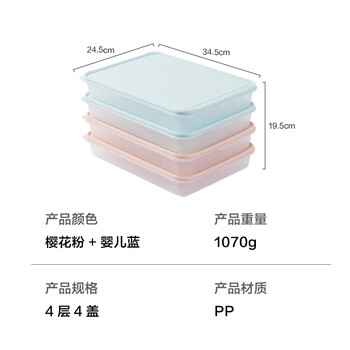 京东京造 饺子冰箱收纳盒 食品接触级包水饺馄饨冷冻收纳盒 (四层四盖)