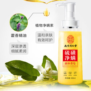 同仁堂硫磺除螨沐浴露液体香皂液止痒持久留香控油去螨虫后背祛痘500ml