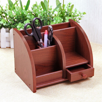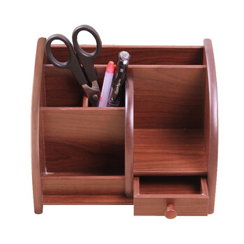 金得利 高品质木质多功能笔筒大号桌面收纳盒办公用品组合遥控器化妆品收纳盒纪念品工艺品 胡桃色 SN180
