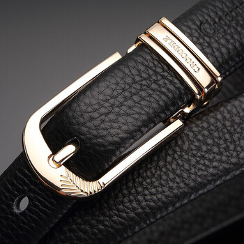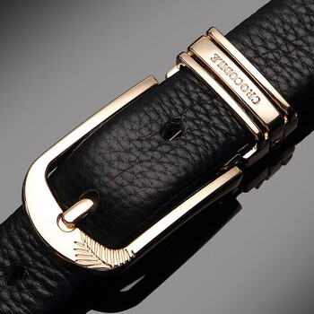 鳄鱼恤双面头层牛皮女士腰带休闲针扣皮带生日礼物送女友11609黑色
