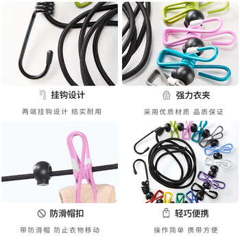 易旅旅行晾衣绳带固定夹防滑户外强力晒衣绳免打孔酒店挂晒带12夹彩色