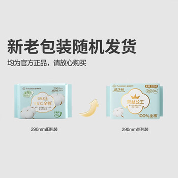 全棉时代(Purcotton)卫生巾奈丝公主超净吸系列姨妈巾亲肤超薄日夜两用290MM 8片*6包