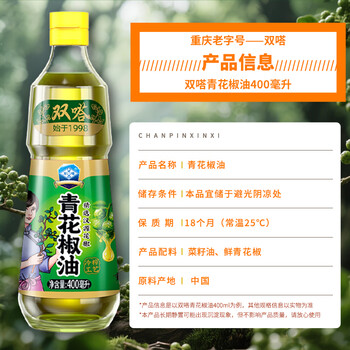 双嗒青花椒油 鲜花椒油 藤椒油麻辣烫 重庆老字号 400ml青花椒油