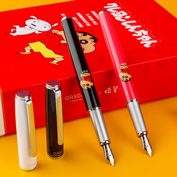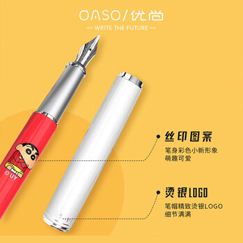 【开学必备】优尚(OASO)钢笔高端学生钢笔 蜡笔小新IP联名款 萌趣墨水笔礼盒套装墨水礼盒中性签字笔萌动红铱金笔