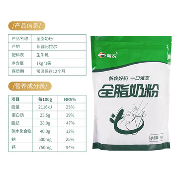 新农 全脂奶粉1kg/袋 中老年奶粉 成人奶粉 新疆奶粉