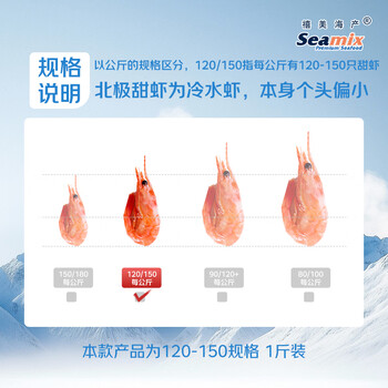 禧美海产加拿大熟冻北极甜虾1斤/袋 65-85只 (MSC认证) 海鲜水产 轻食海鲜