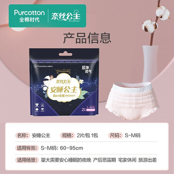 全棉时代(Purcotton)奈丝公主安睡公主经期裤S-M码,2片/袋*5袋 共10片