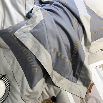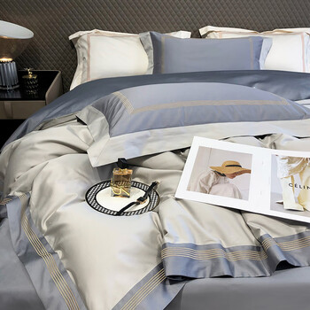 La Torretta140支澳棉四件套纯棉 高端长绒棉刺绣床上被套床单 灰1.8/2.0m床