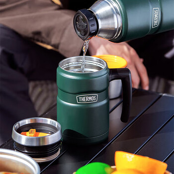 膳魔师(THERMOS)日式不锈钢大容量带手柄保温杯咖啡杯TSK-470S 绿色