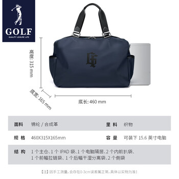 高尔夫(GOLF)多隔层大容量男士可斜挎手提旅行包