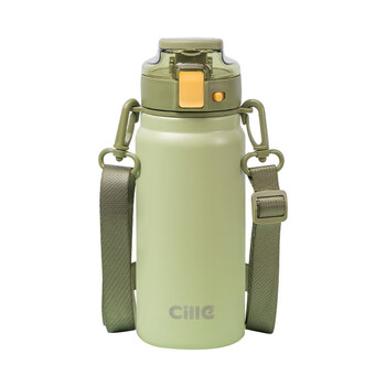 希乐保温杯316不锈钢高颜值男女士户外健身运动双饮弹跳杯森林绿600ml