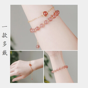 凤凰涅磐草莓晶手链女款粉水晶桃花手串平安串珠转运珠首饰生日礼物女