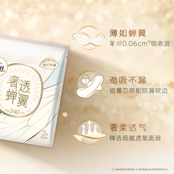 高洁丝奢透蝉翼极薄不闷240mm2片日用卫生巾姨妈巾【试用装勿拍】