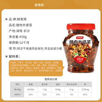 鲜窝窝 腊肉外婆菜458g 农家特产下饭菜咸菜 香辣酱菜榨菜早餐拌饭拌面