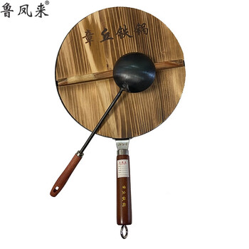 鲁凤来. 章丘锻打铁锅 32CM 勺子铲子木盖老式家用炒锅带盖 FLTG-1303