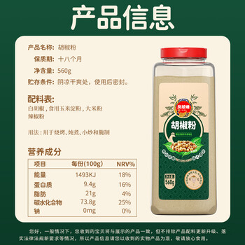 凤球唛白胡椒粉560g大瓶装胡辣汤熬汤烧烤煲汤炒菜香辛调味粉料