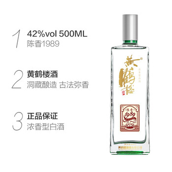 黄鹤楼陈香1989 42度单瓶装白酒500ml口感浓香型