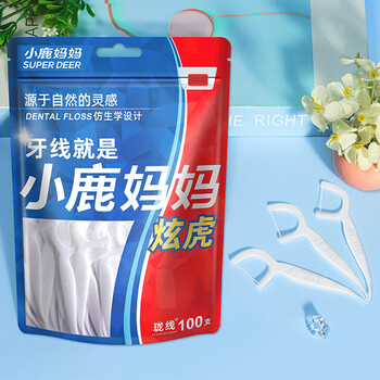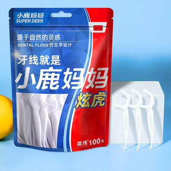 小鹿妈妈炫虎牙线棒细滑超细家庭装牙签100支/袋*2袋共200支+随身盒