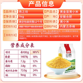 燕之坊 黄金苗黄小米2斤(小黄米 五谷杂粮 量贩装)