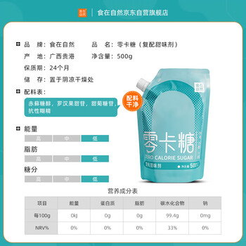 食在自然零卡糖500g罗汉果糖赤藓糖醇无糖代糖甜品咖啡调味糖0糖0脂0卡糖