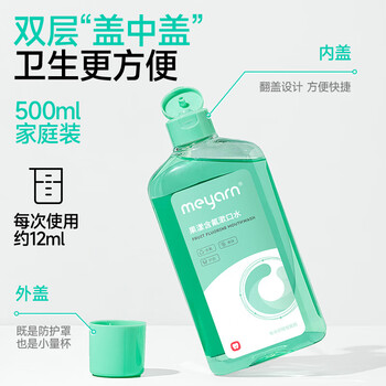 米妍(meyarn)正畸漱口水500ml 含氟防蛀杀菌清新口气无酒精 新旧包装随机发