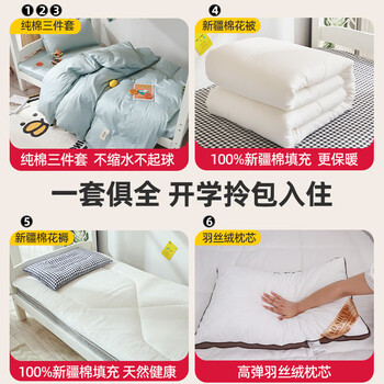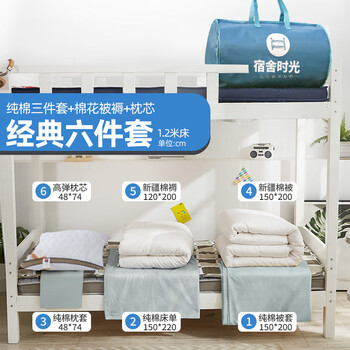 梦诗娜全棉宿舍六件套床上用品单人被褥套装被子褥子全套1.2米梵星蓝