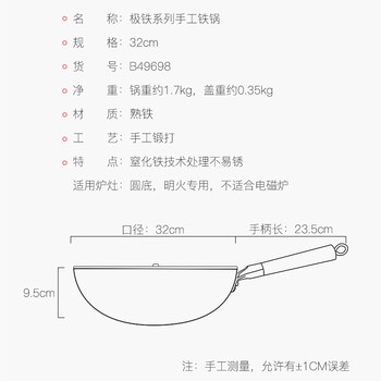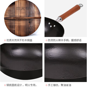 炊大皇炒锅铁锅纯手工锻打圆底健康0无涂层铁锅家用炒菜锅32cmB49698