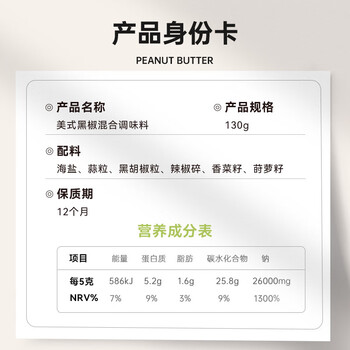 吉得利 美式黑椒混合调味料海盐黑胡椒研磨瓶130g 西餐牛排烧烤调料