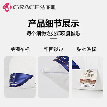 洁丽雅(Grace)枕头枕芯一对装星级酒店成人枕芯高弹纤维枕 白色2只装 45x70cm