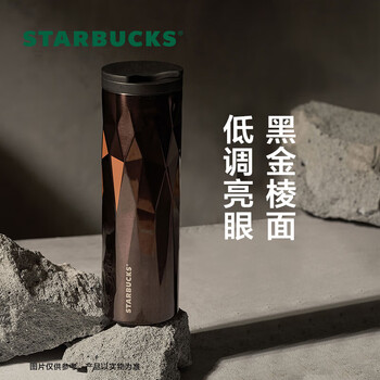 星巴克(Starbucks)经典黑金棱面不锈钢保温保冷杯473ml桌面保冷杯女神节礼物