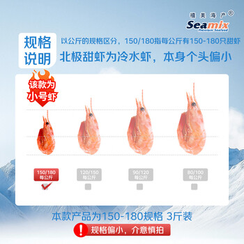 禧美海产熟冻北极甜虾净重3斤装/盒 150/180小号规格 MSC认证 轻食海鲜