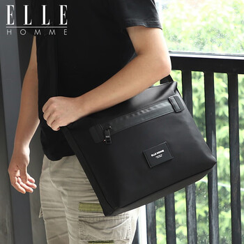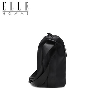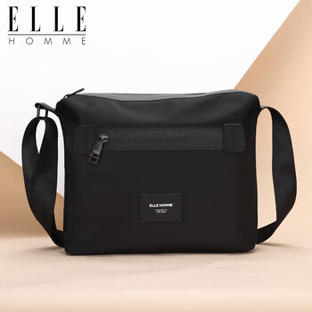 ELLE HOMME男士单肩包 潮流大容量横款尼龙帆布斜挎包 防泼水时尚男包EA288200730黑色生日礼物送男友