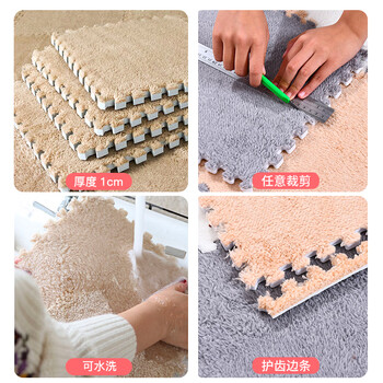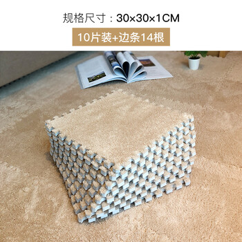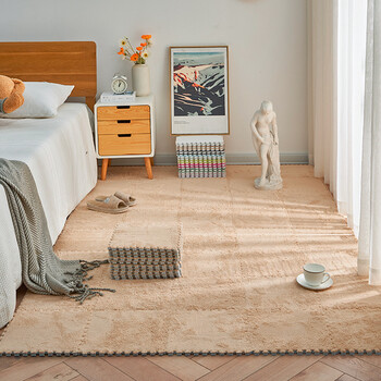 foojo毛绒方块拼接地毯 客厅卧室满铺隔音隔凉防滑30cm10片装驼色