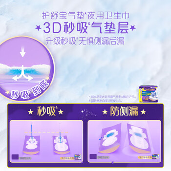 护舒宝考拉呼呼超长夜用卫生巾425mm12片姨妈巾试用京东自营官方旗舰