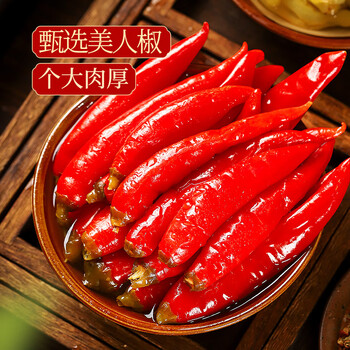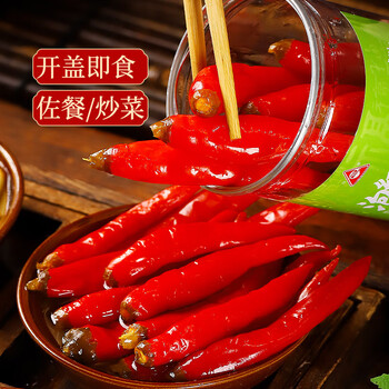 川珍 泡红椒500g 四川红泡椒 泡美人椒辣椒泡海椒调味咸菜