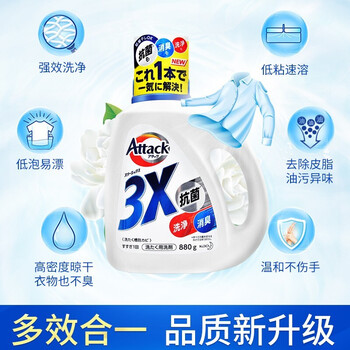 花王(KAO)洗衣液750g*2瓶酵素去污浓缩洗衣液阴天除异味消臭抗菌新旧随机发