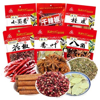 烧卤香料组合6袋装300g ,内含(八角45g,花椒50g,桂皮50g,干辣椒100g,香叶15g,小茴香40g)