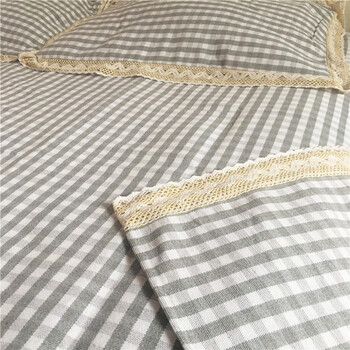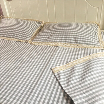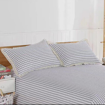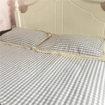 鲁凤来. 老粗布三件套 双人床加厚床单+枕套一对 200*230cm床单 小灰格