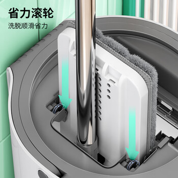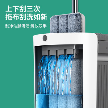 博生平板拖把33CM杆长125CM2配布刮刮桶家用一拖净免手洗干湿两用