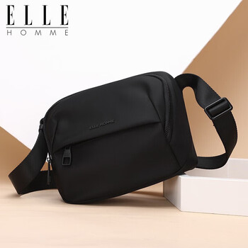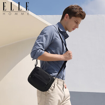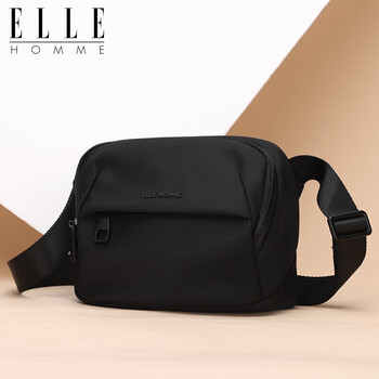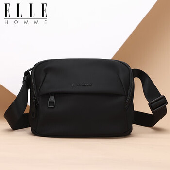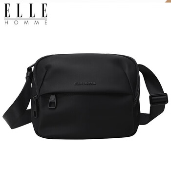 ELLE HOMME男士单肩包 潮流轻便帆布斜挎包 防泼水休闲手机包男包08331黑色生日礼物送男友