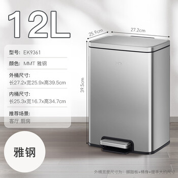 EKO脚踏垃圾桶12L雅钢家用带盖大号不锈钢卫生间厨房张若昀推荐9361