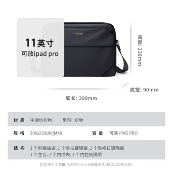 高尔夫(GOLF)单肩包男士大容量斜挎包男轻便防泼水手机ipad包商务休闲挎包